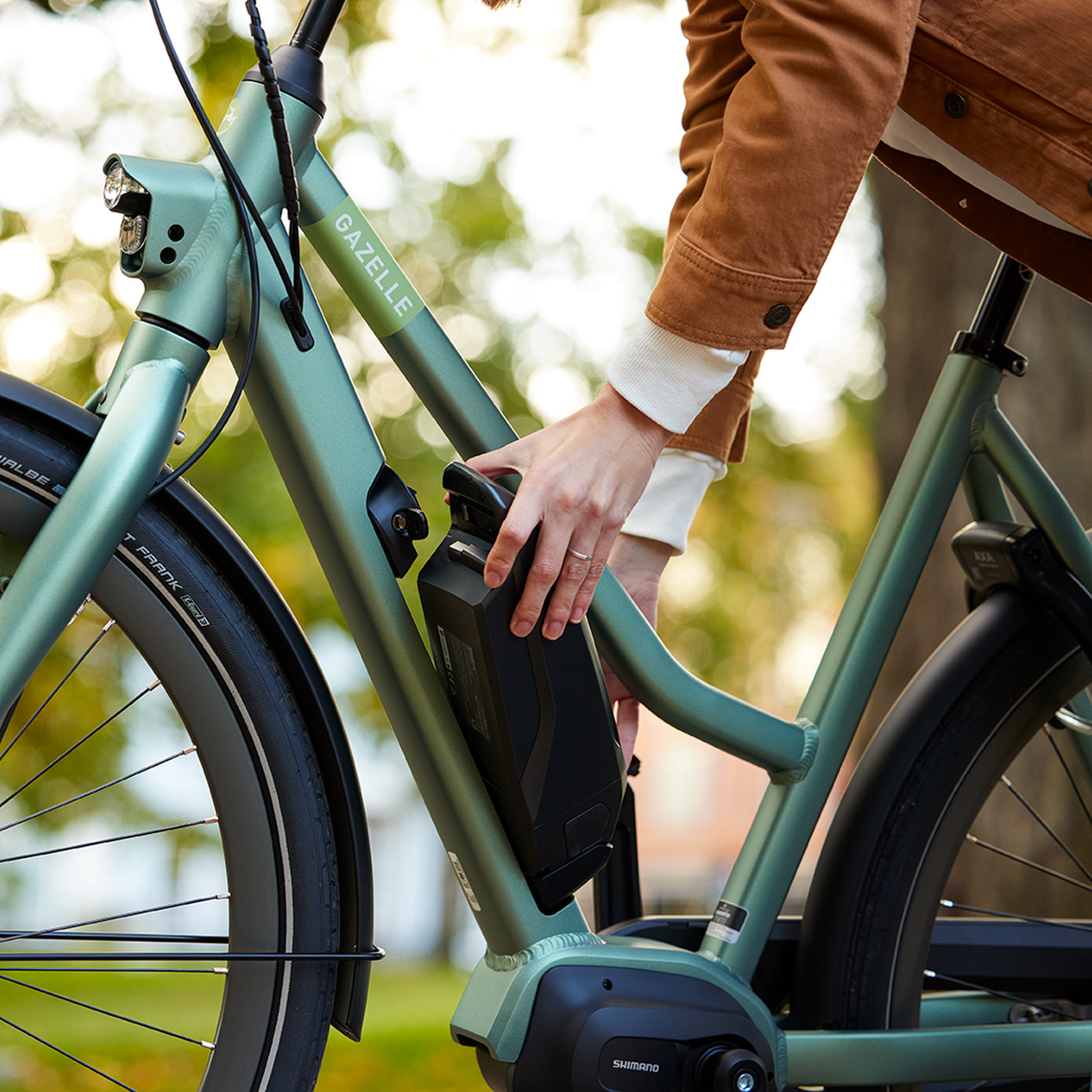 Med en elcykel med Shimano Steps centermotor placeres batteriet ofte i bagagebæreren eller på rammen (CityGo C7 HMS). Når batteriet placeres i bagagebæreren, kan du selv vælge et batteri. Dette hurtige genopladelige li-ion-batteri har en stor kapacitet og tager dig, hvor du vil hen og tilbage igen. Shimano Steps-batteriet kan altid oplades hurtigt, praktisk når du er på farten!