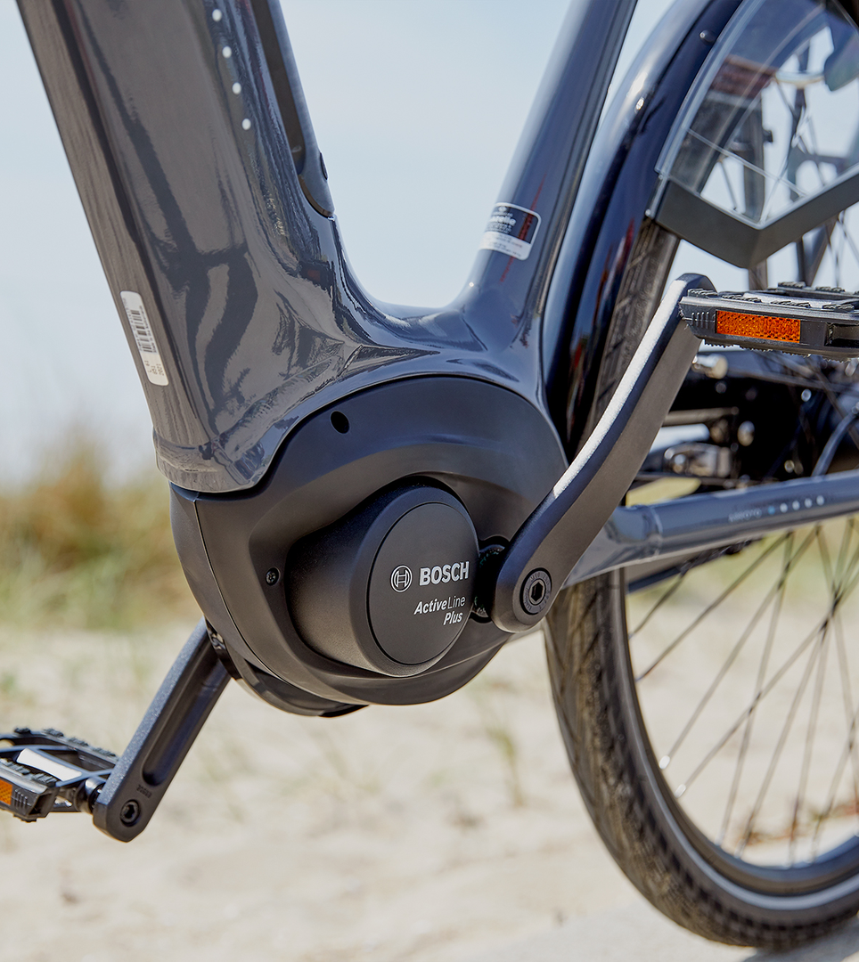 Ein Elektro-Fahrrad kombiniert Ihre eigene Kraft mit der Kraft eines Elektromotors. Dieser Motor unterstützt Sie bis zu einer Geschwindigkeit von ca. 25 Kilometer pro Stunde. Der Strom für den „elektrischen Rückenwind“ kommt aus dem Akku, der oft in den Gepäckträger integriert ist. Der Motor befindet sich bei einem E-Bike in der Mitte des Fahrrads, im Hinterrad oder im Vorderrad. Intelligente Sensoren messen Ihre Geschwindigkeit, Tretkraft oder die Pedalrotation und ermitteln anhand dieser Daten die optimale elektrische Unterstützung.