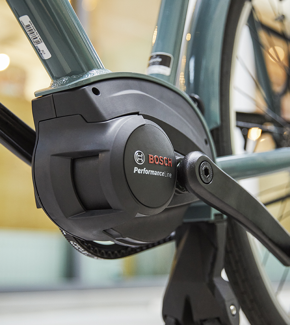 Der Tretkraftsensor registriert nicht nur, ob sich die Pedale drehen, sondern auch, mit wie viel Kraft Sie in die Pedale treten. Der Motor wird auf Basis dieser Informationen gesteuert und gibt sofort mehr oder weniger Unterstützung. Dabei spüren Sie keine Verzögerung. So bekommen Sie beim Radfahren genau die richtige Unterstützung. Der Kraftsensor sorgt dafür, dass die Unterstützung sofort unterbrochen wird, sobald Sie mit dem Treten aufhören oder bremsen.