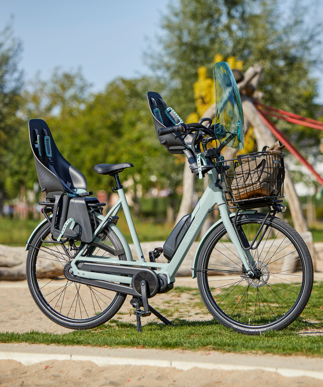 Einfach auf- und absteigen dank des tiefen Einstiegs und mehr Platz zwischen Sattel und Lenker. So können Sie Ihren Nachwuchs im Kindersitz sicher transportieren und bewegen sich unbehelligt durch den Verkehr.