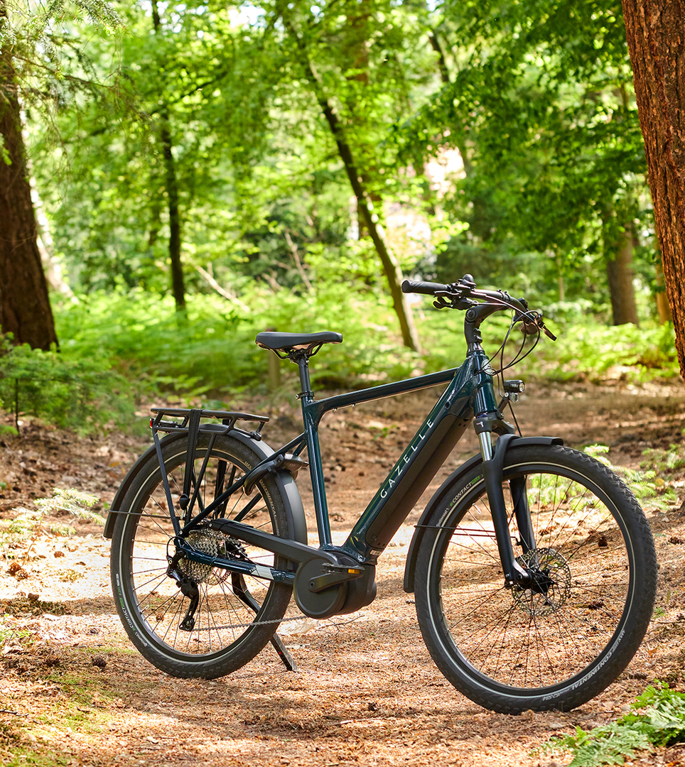 Das praktische Design und die von Gazelle ausgewählten Komponenten sorgen dafür, dass sich das Medeo auch als Citybike empfiehlt. Dank der breiten Reifen und der gefederten Vordergabel bleibt das Medeo auch auf Kopfsteinpflaster ein leises Fortbewegungsmittel mit außerordentlich viel Fahrkomfort. Mit den robusten Schutzblechen und dem ebenso robusten Kettenschutz brauchen Sie nicht unbedingt eine dicke Regenhose zu tragen, um sich vor hochspritzendem Wasser zu schützen. Darüber hinaus verfügt das Medeo über solide Front- und Rücklichter sowie über ein festes Schloss und einen kräftigen Seitenständer. Eine Tasche oder ein Korb lässt sich schnell und problemlos am Gepäckträger anbringen. Natürlich fehlen auch die Spannbänder am Gepäckträger nicht.