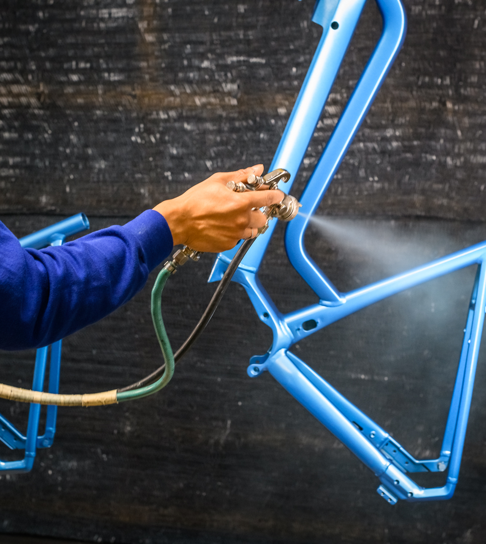 Gazelle verwendet ausschließlich wasserbasierte Farbe für seine Fahrräder, und unsere spezielle Anwendungsmethode bedeutet, dass kein Verschwendung entsteht. Um den Übergang von Gas zu erneuerbarer Energie abzuschließen, ist unser Ziel, unsere Öfen durch elektrische Öfen zu ersetzen. Wir planen auch, die Wärme aus der Lackiererei wiederzuverwenden.