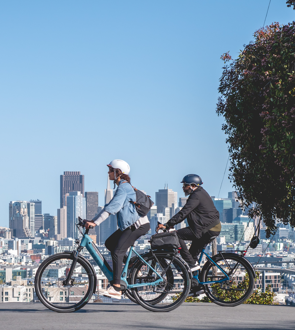 Bikes in our Sportive category have our most forward posture to inspire more sporty and adventurous riding. Higher gear ranges with external derailleurs complement more challenging routes. Stiffer mid and high-step frames offer a responsive road feel. These bikes feature front suspension forks and powerful brakes.