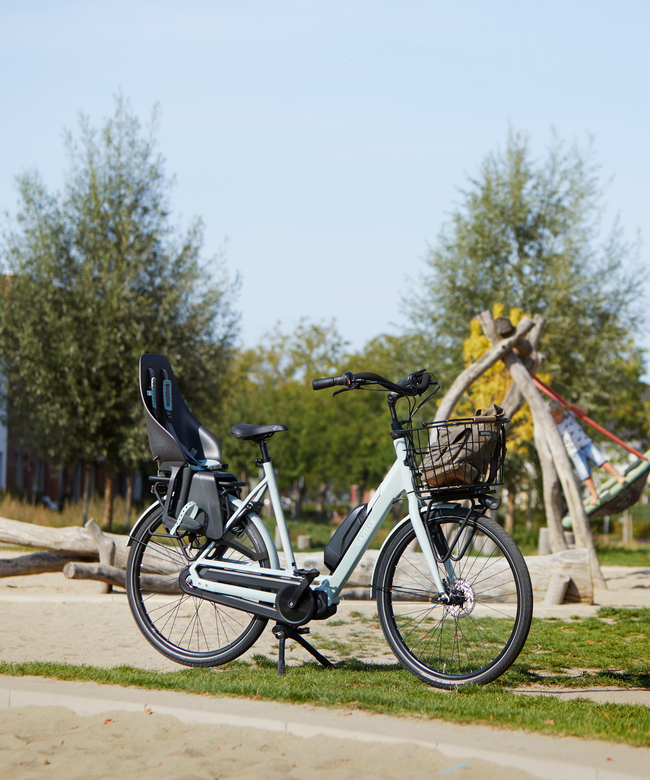 Easy to get on and off due to the low entry and extra space between saddle and grips. This way you can safely take your little one with you in the child seat and you can easily steer through traffic. And with the powerful support, the ride is never heavy.