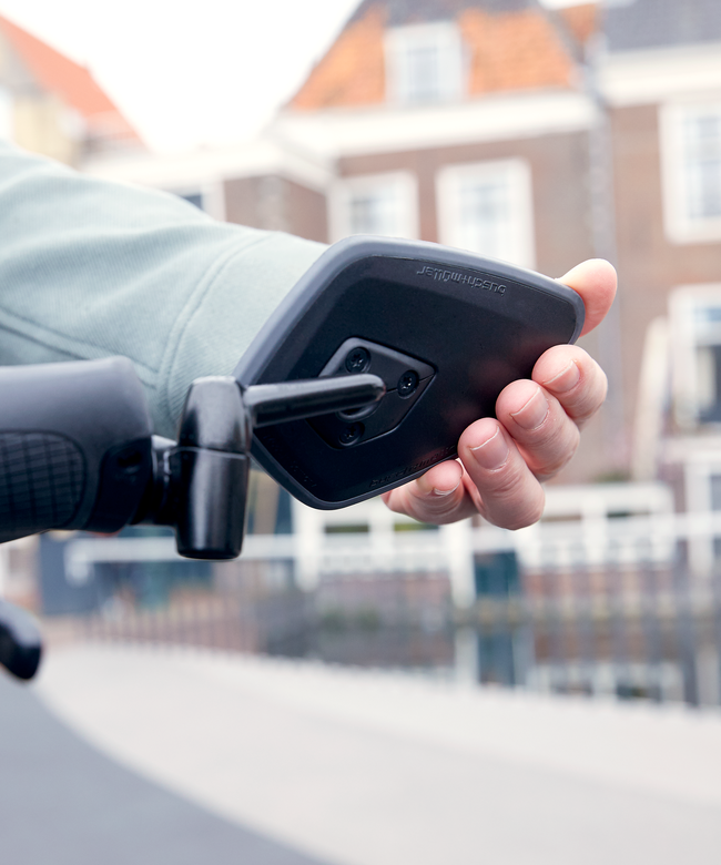 - Aluminium frame with a unique geometry with a low step-through which allows you as cyclist to always get your feet on the ground, so you don’t have to get off when you stop. Mid-mounted motor and low positioned battery provide great stability.