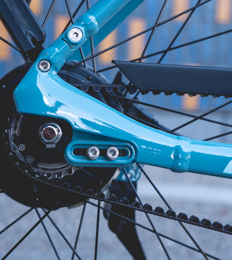 The CVT hub from Enviolo enables stepless, smooth, and whisper quiet shifting, especially when combined with a belt drive...in our case, a Gates carbon belt drive. No clicks, clacks, or squeaks, just easy, relaxed shifting that meet your specific riding needs and style.