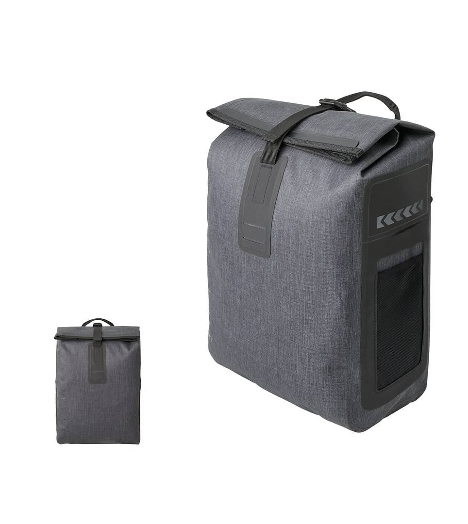 The Gazelle single pannier was developed for leisure and everyday use. With an 18.5 liter capacity, this pannier can handle a small load of groceries, a serious haul from the library, or be used as a shoulder bag for off-bike adventures thanks to an included strap. The bag features a large inner compartment, a smaller lockable outer pocket with a zipper, and a flexible front compartment. Items will stay dry and protected thanks to a water-resistant fabric and hidden rain cover, while composite mounting hooks secure the pannier firmly in place on the rear rack.
