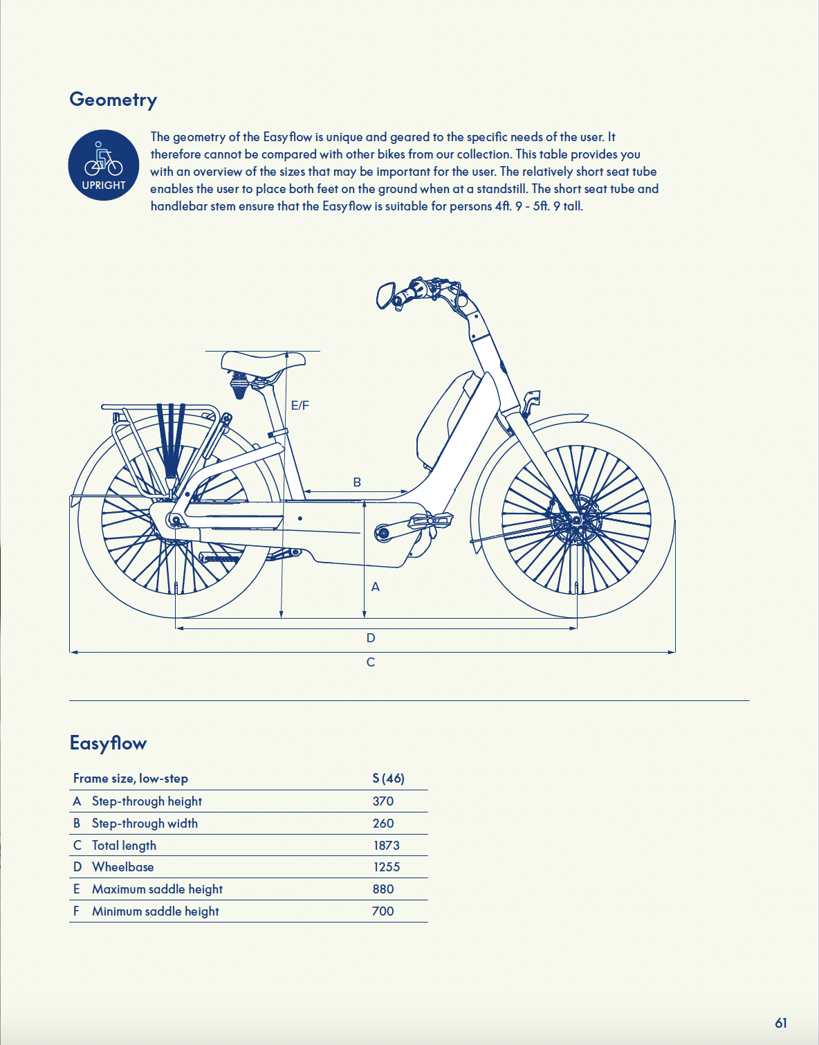 In addition, your ideal frame size depends on a number of factors: type of bike (e.g. ebike or city bike), your inseam, sitting position, and whether you want a sprung saddle. Personal preference is also important. We always advise to go test drive so that you can experience the differences in frame sizes for yourself.