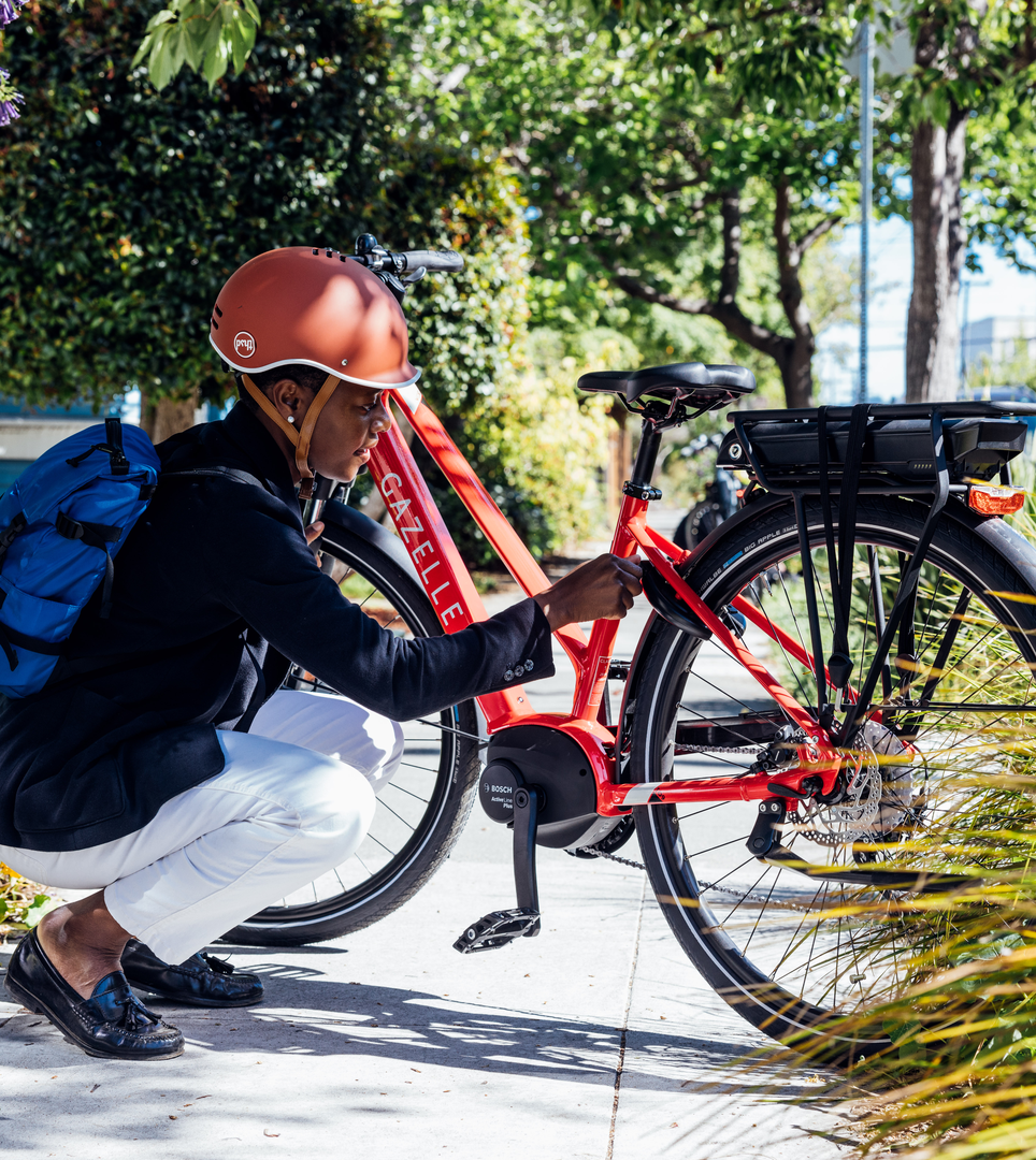 You can easily have your frame size calculated at one of our Gazelle dealers. Our dealers are well-versed in our sizes and their corresponding height ranges, as well as taking other measurements to help dial in the perfect fit for you. You can also test ride multiple sizes and bike models to ensure you are making the right choice.