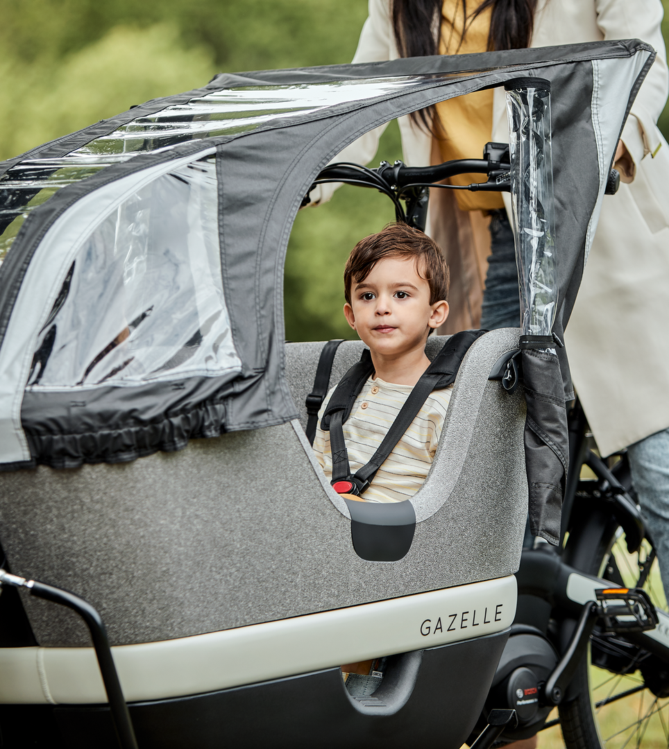 La bâche anti-pluie est conçue de telle sorte que même la place assise sur la banquette avant reste confortable.