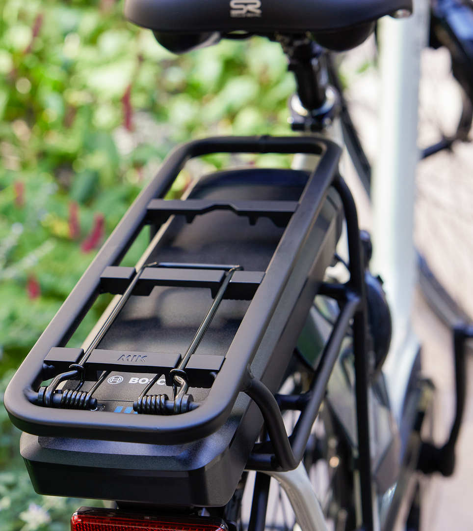 elektrische fiets zit. De batterij en de motor zorgen er samen voor dat het gewicht van een elektrische fiets zo’n 6 kilo hoger ligt dan bij een normale fiets. Bij een elektrische fiets kan de batterij op drie verschillende posities zitten, namelijk: