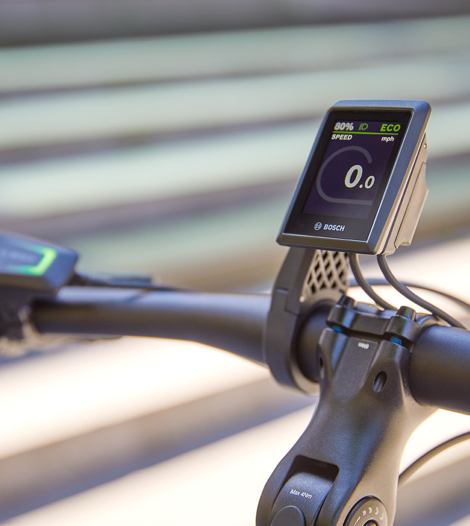 Het overzichtelijke middendisplay van de Bosch middenmotor bedien je eenvoudig met je handvat. Zo hoef je je handen niet te verplaatsen tijdens het bedienen van de Bosch fietscomputer. Het LCD scherm zorgt ervoor dat je altijd duidelijk je snelheid, afstand, rijtijd en actuele actieradius kunt aflezen. Fietsen met Bosch Intuvia display hebben 4 rijmodi: Turbo, Sport, Tour en Eco.
