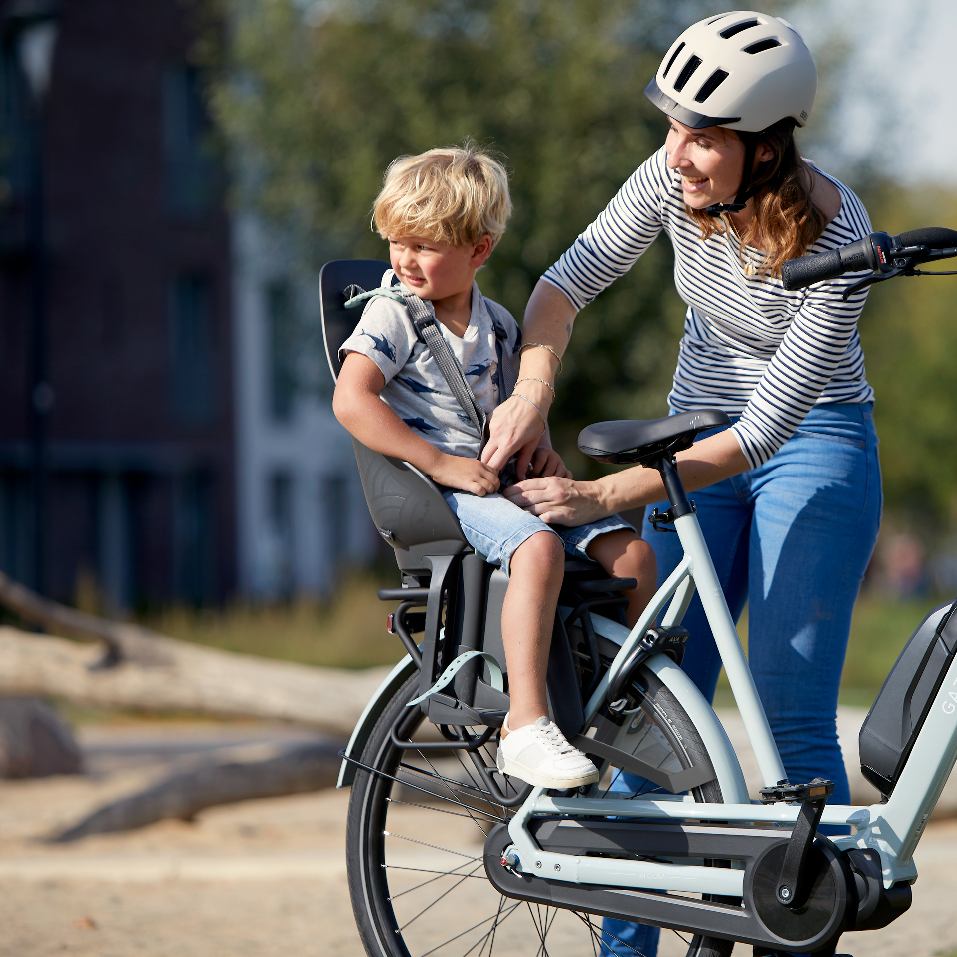 Scroll naar beneden voor meer tips over voor- of achterzitjes. Als je nog steeds niet zeker bent, bezoek dan jouw Gazelle-winkel en laat je adviseren over hoe je veilig met kinderen op een e-bike kunt rijden.