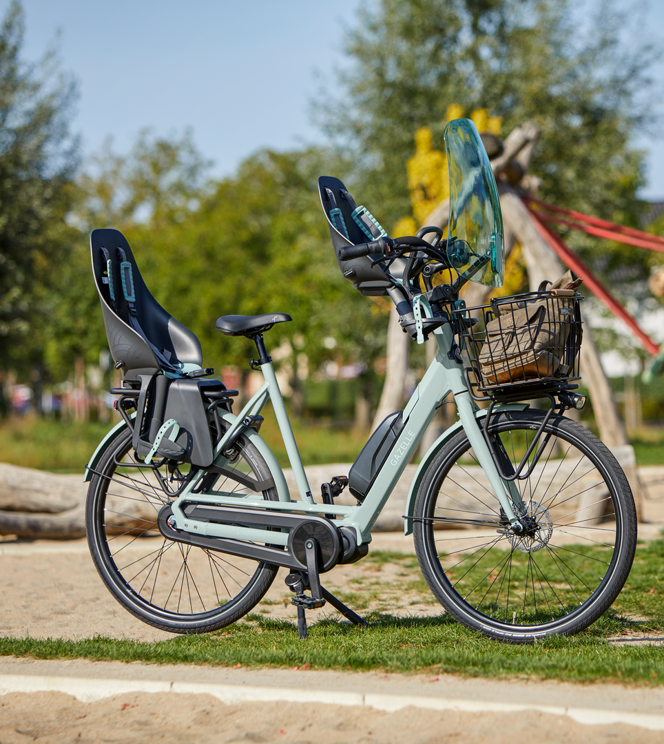 Bovendien is er extra ruimte tussen het stuur en het zadel, zodat er gemakkelijk een voorzitje tussen past. De stevige bagagedrager van deze e-bike is ook perfect voor het monteren van een kinderzitje, en je fiets staat stabiel dankzij de dubbele standaard en het stuurslot. Als het om jouw kind gaat, staat veiligheid natuurlijk voorop bij het rijden op een e-bike met kinderen!