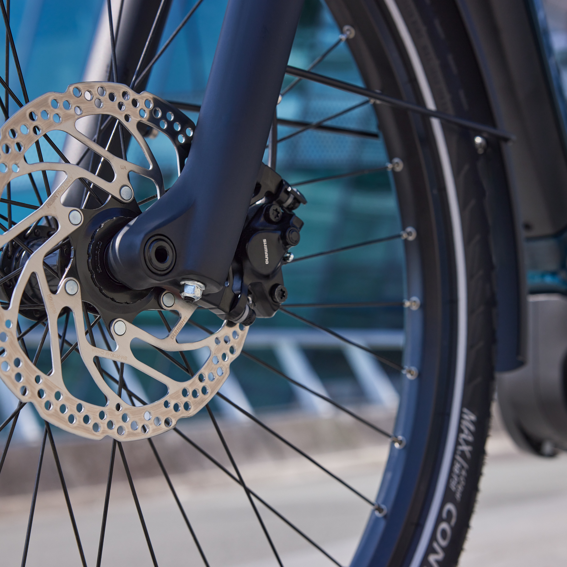 Som du säkert kan föreställa dig är ett kraftfullt bromssystem ingen onödig lyx på en elcykel. Tack vare motorassistansen (som möjliggör en hastighet på upp till 25 kilometer i timmen) susar du fram utan ansträngning, så det är viktigt att lätt kunna stanna både i låg och hög hastighet.